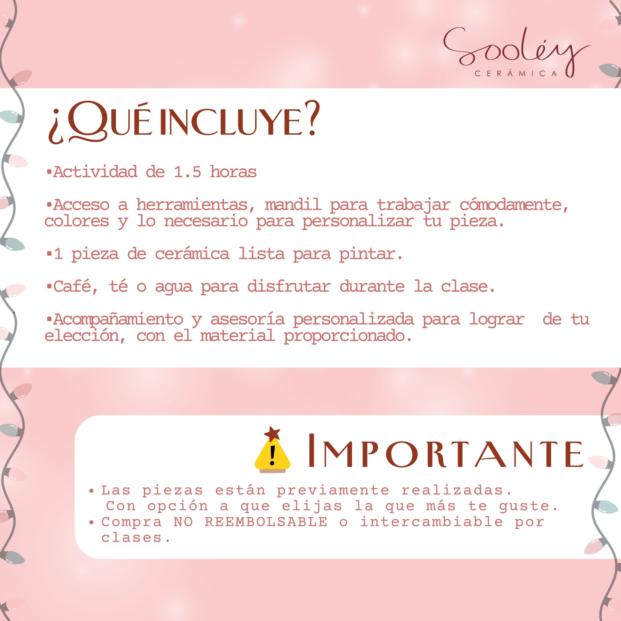 • Pintarás una pieza de cerámica navideña previamente preparada para ti.